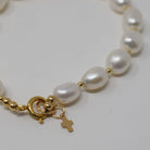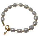 Peace in Thy Strength Bracelet – White Baroque Pearls with Gold-Filled Cross Charm | Handmade Jewelry for the Woman Who Finds Power in Peace