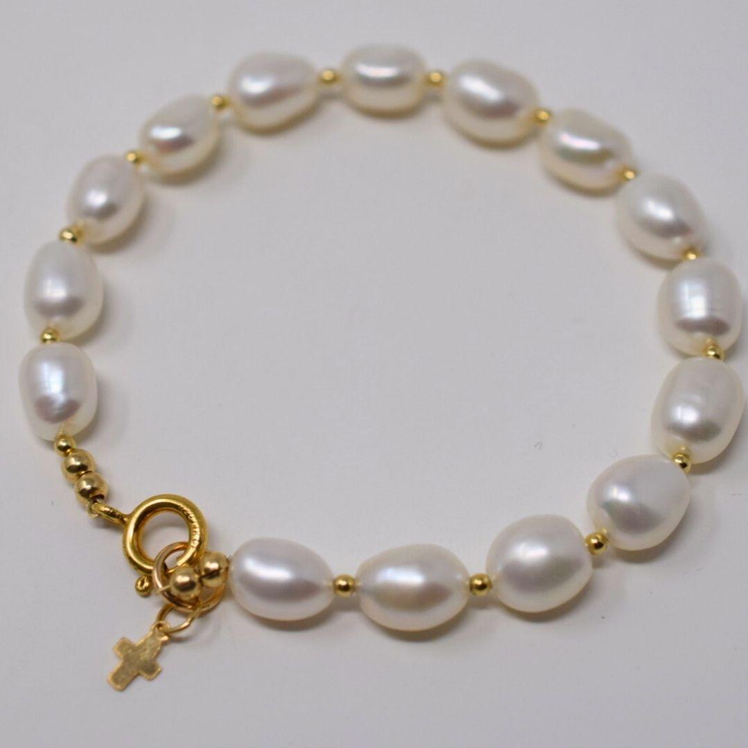 🤍 Peace in Thy Strength Bracelet – White Baroque Pearls with Gold-Filled Cross Charm | Handmade Jewelry for the Woman Who Finds Power in Peace