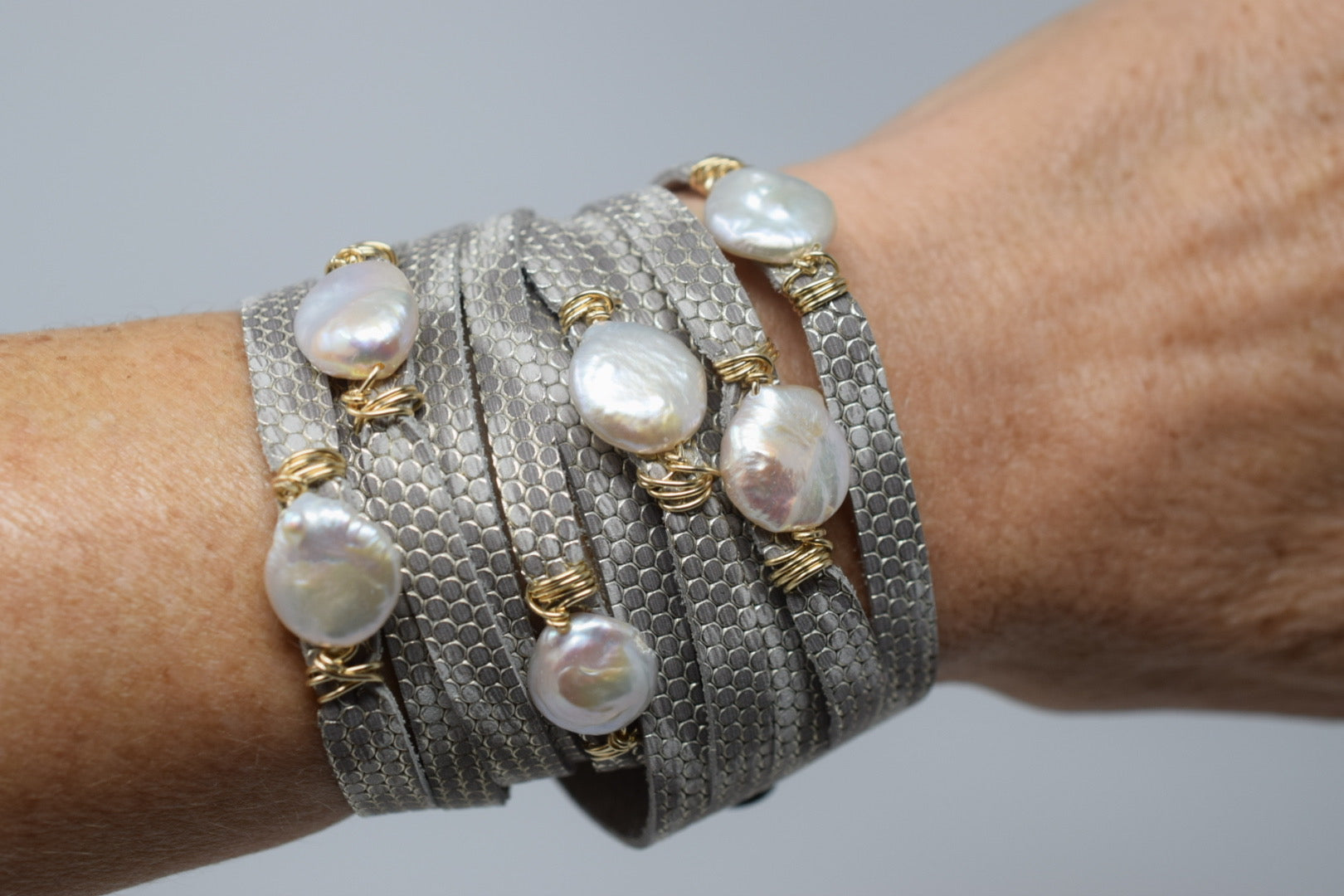 Exotic Hallelujah – Silver Leopard Leather & Coin Pearl Bracelet | Limited Edition Luxury Handmade Jewelry