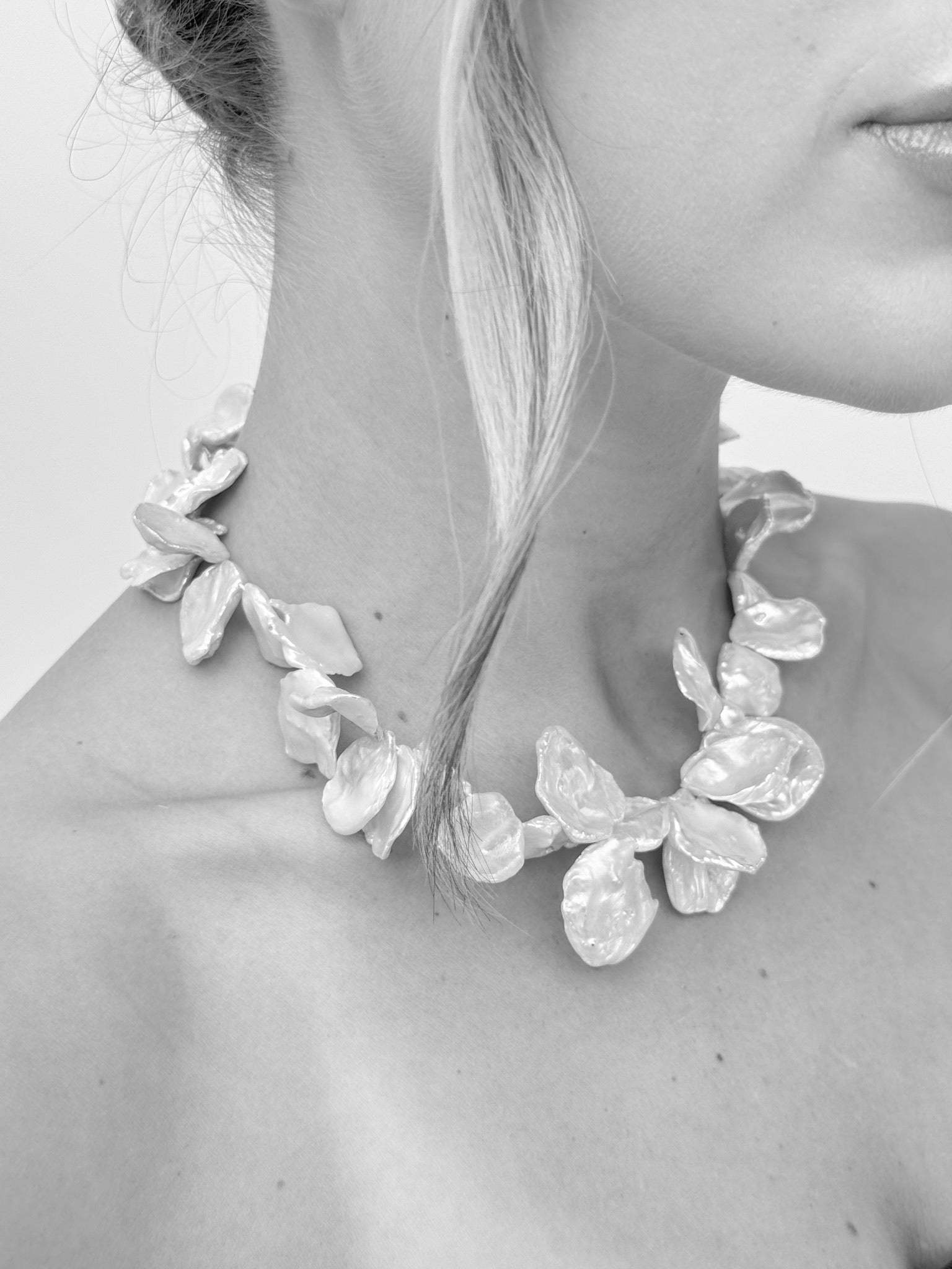 The Keshi Collar Necklace is a breathtaking statement of bold elegance, featuring an extraordinary cascade of 20–30mm XL white keshi pearls that catch every eye and turn every head. Each pearl is uniquely sculpted by nature, creating a one-of-a-kind masterpiece that celebrates your fearless, radiant spirit.