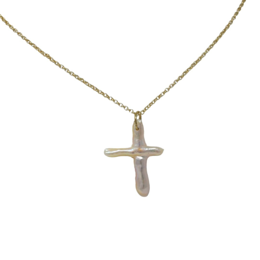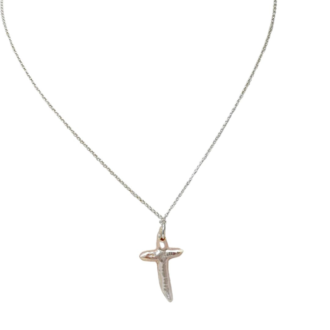 1.25" natural cross-shaped freshwater pearl (pink-champagne undertones)