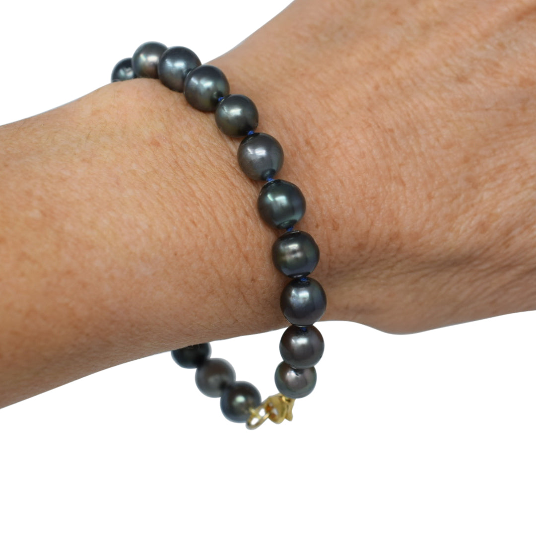 Tahitian Strand Bracelet – 8mm Heirloom Quality Pearls on Navy Silk | Bold Luxury Handmade Jewelry for the Woman Who Commands Grace
