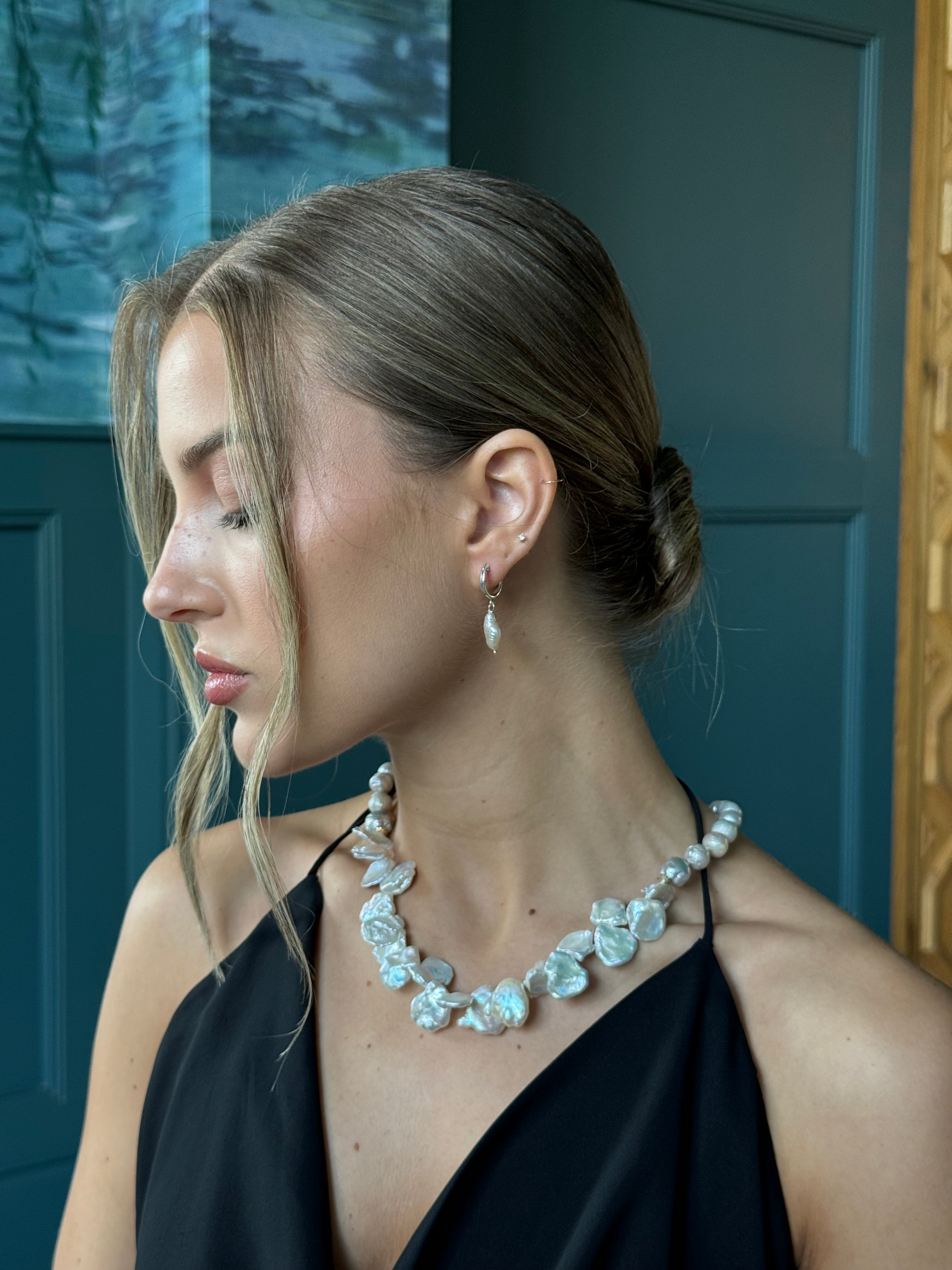 Like the perfect messy bun—soft, sophisticated, and beautifully undone—this Keshi Pearl Bib Necklace is your go-to statement piece that feels special without ever being over the top.
