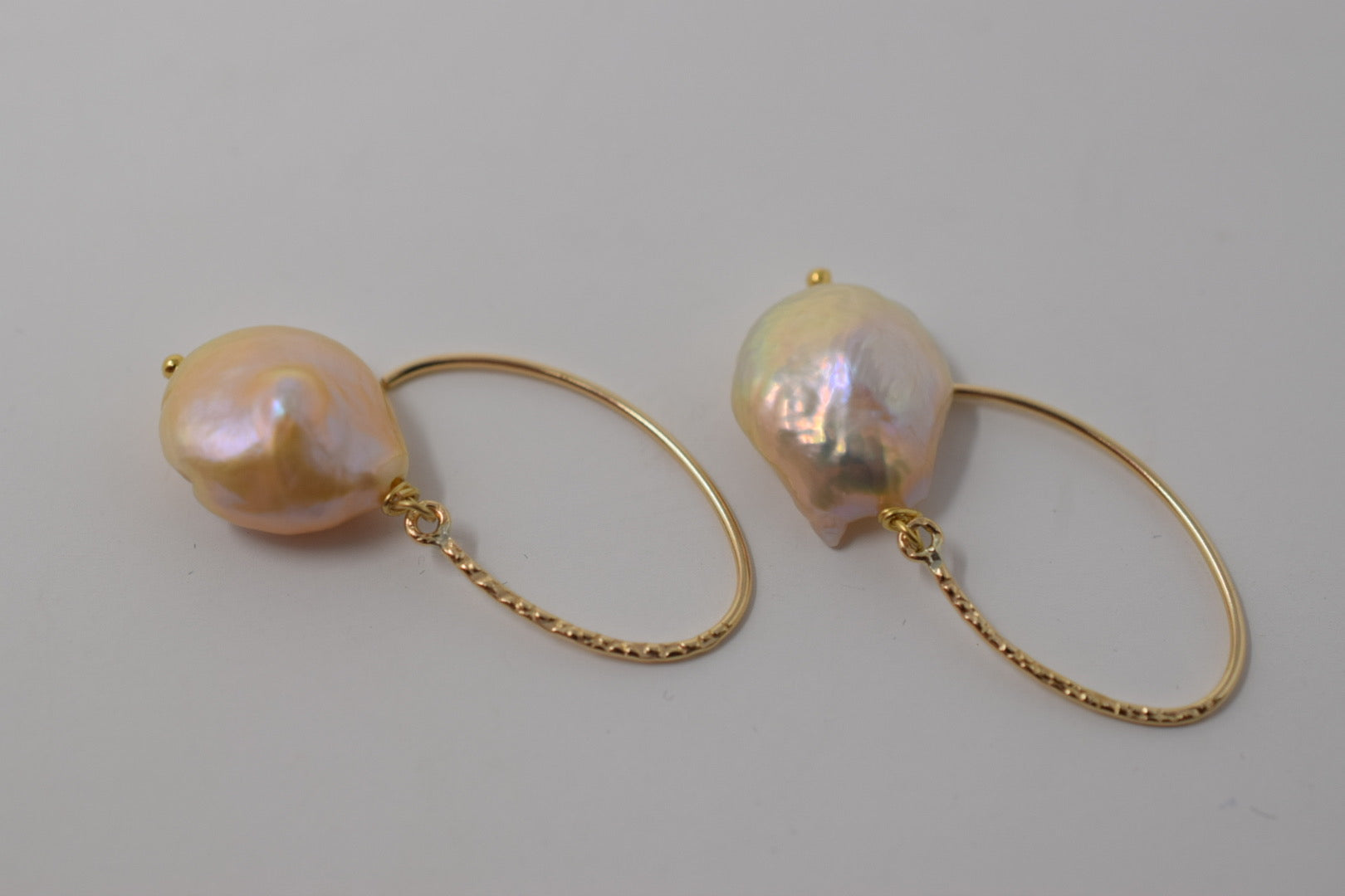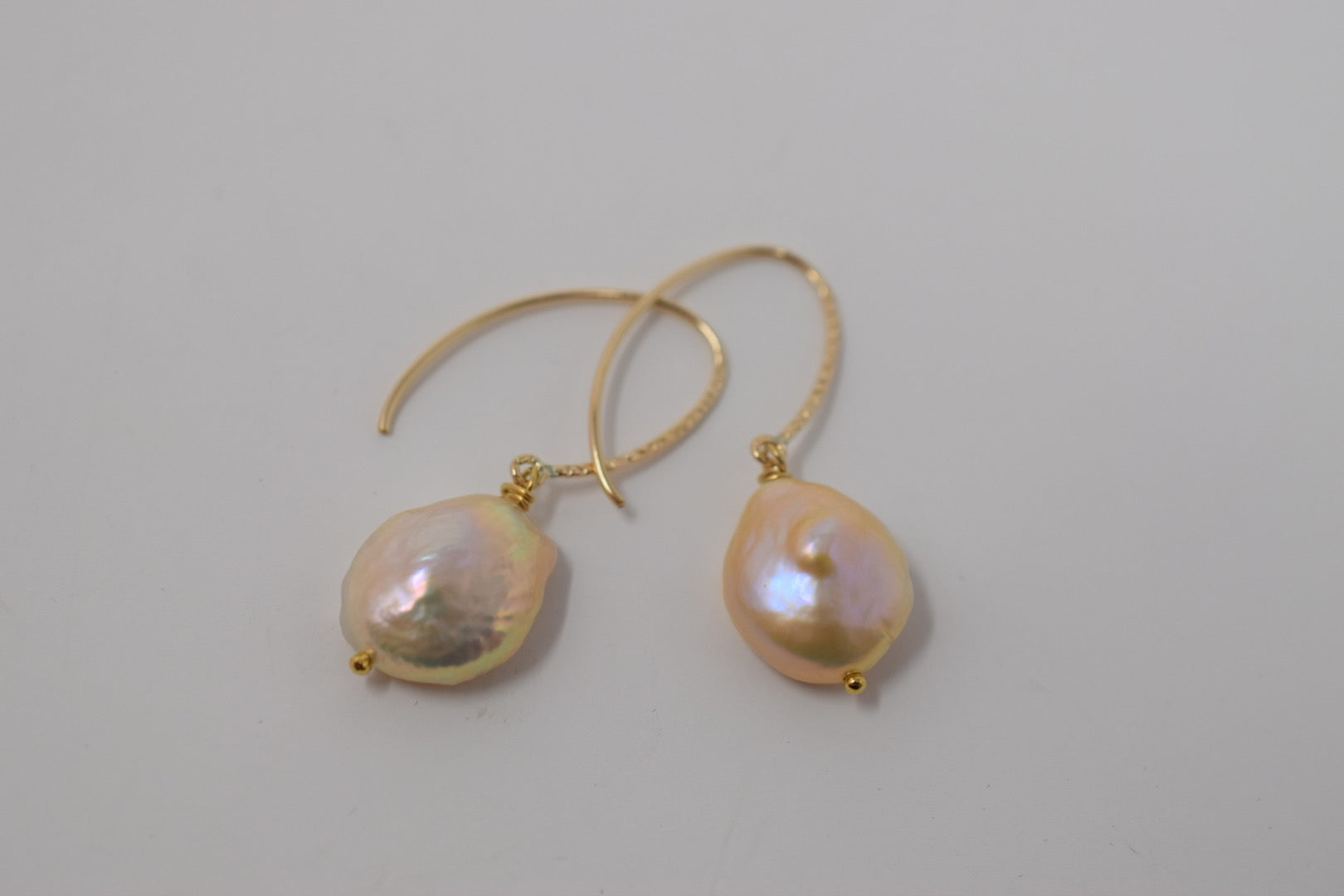 Pink Coin Pearl Earrings | 14k Gold Filled | Empower Your Radiance with Timeless Grace