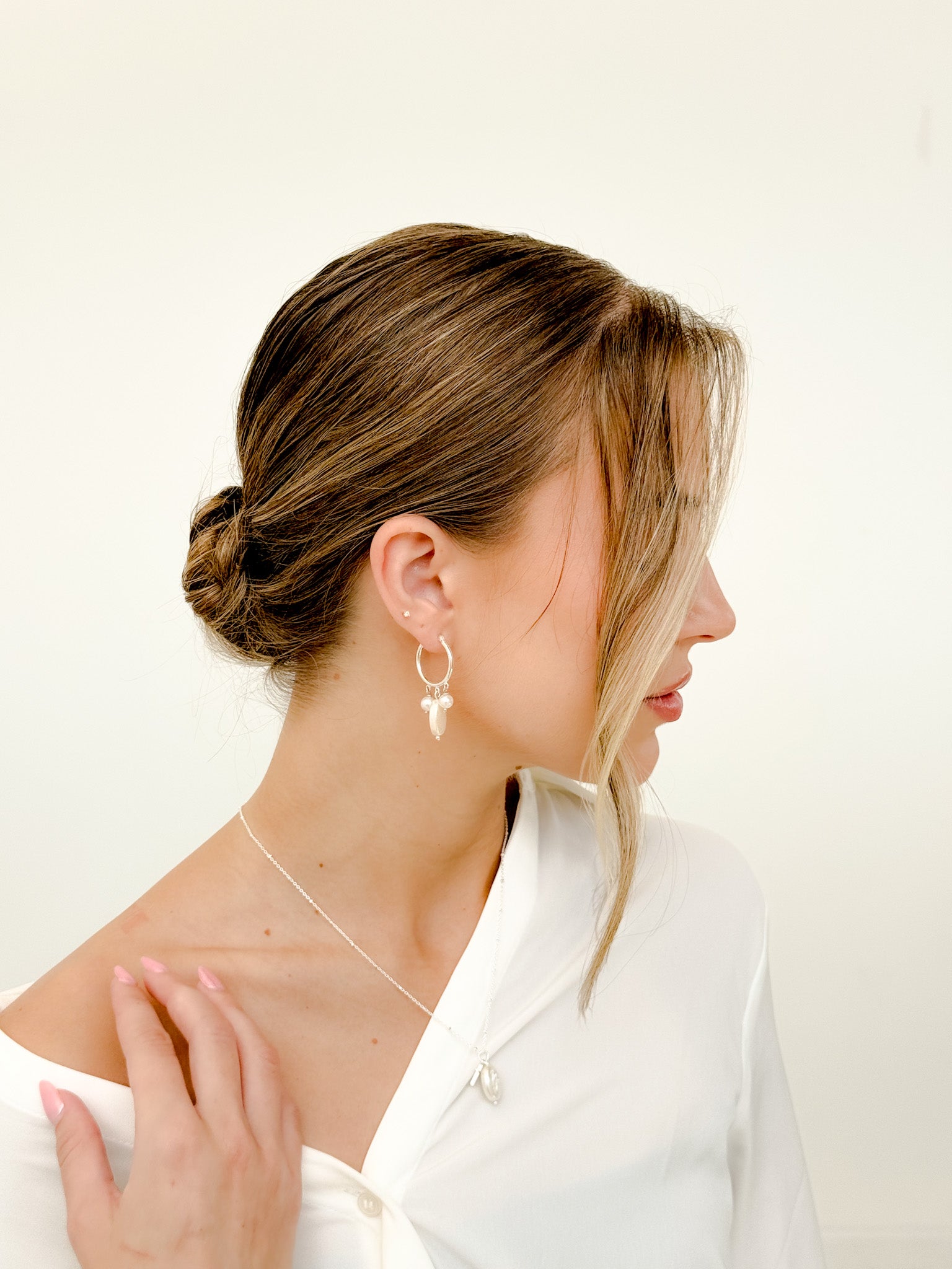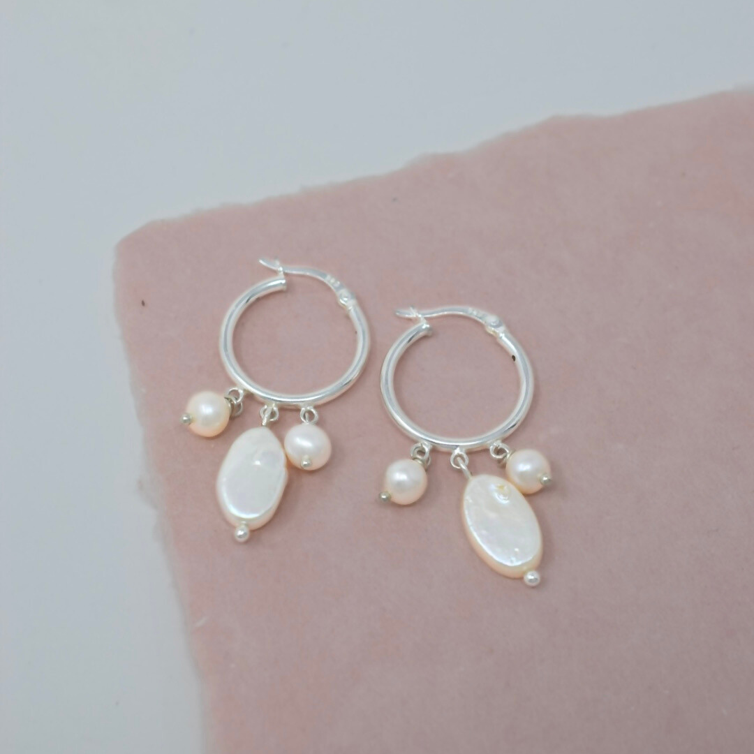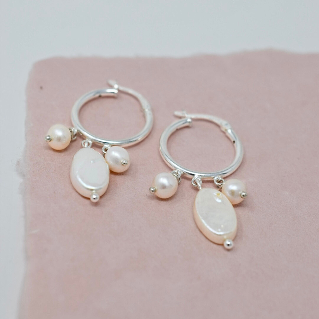 In the Garden – Silver Hoop Earrings with Freshwater Pearls | Elegant Statement Hoops Inspired by Covent Garden