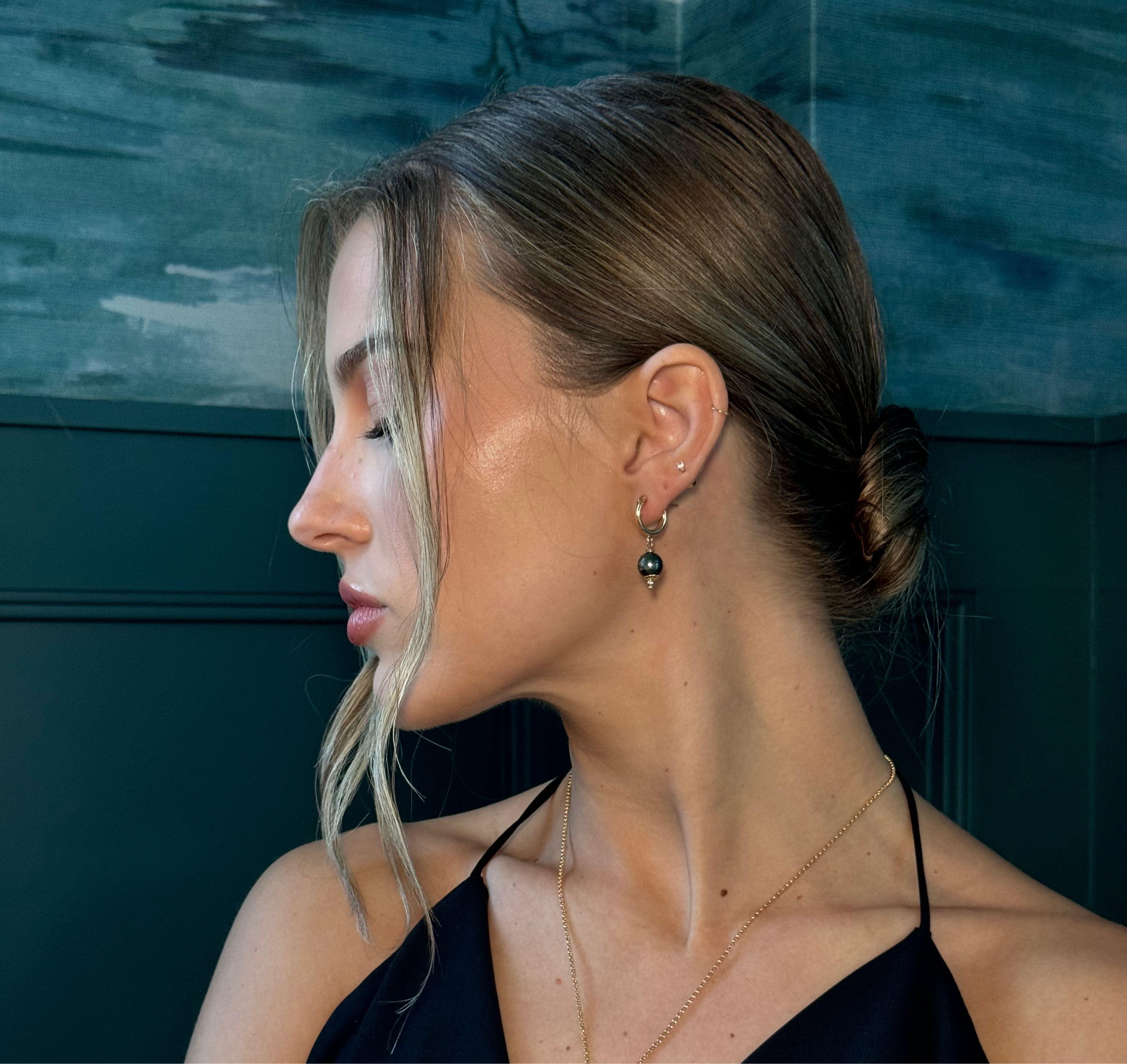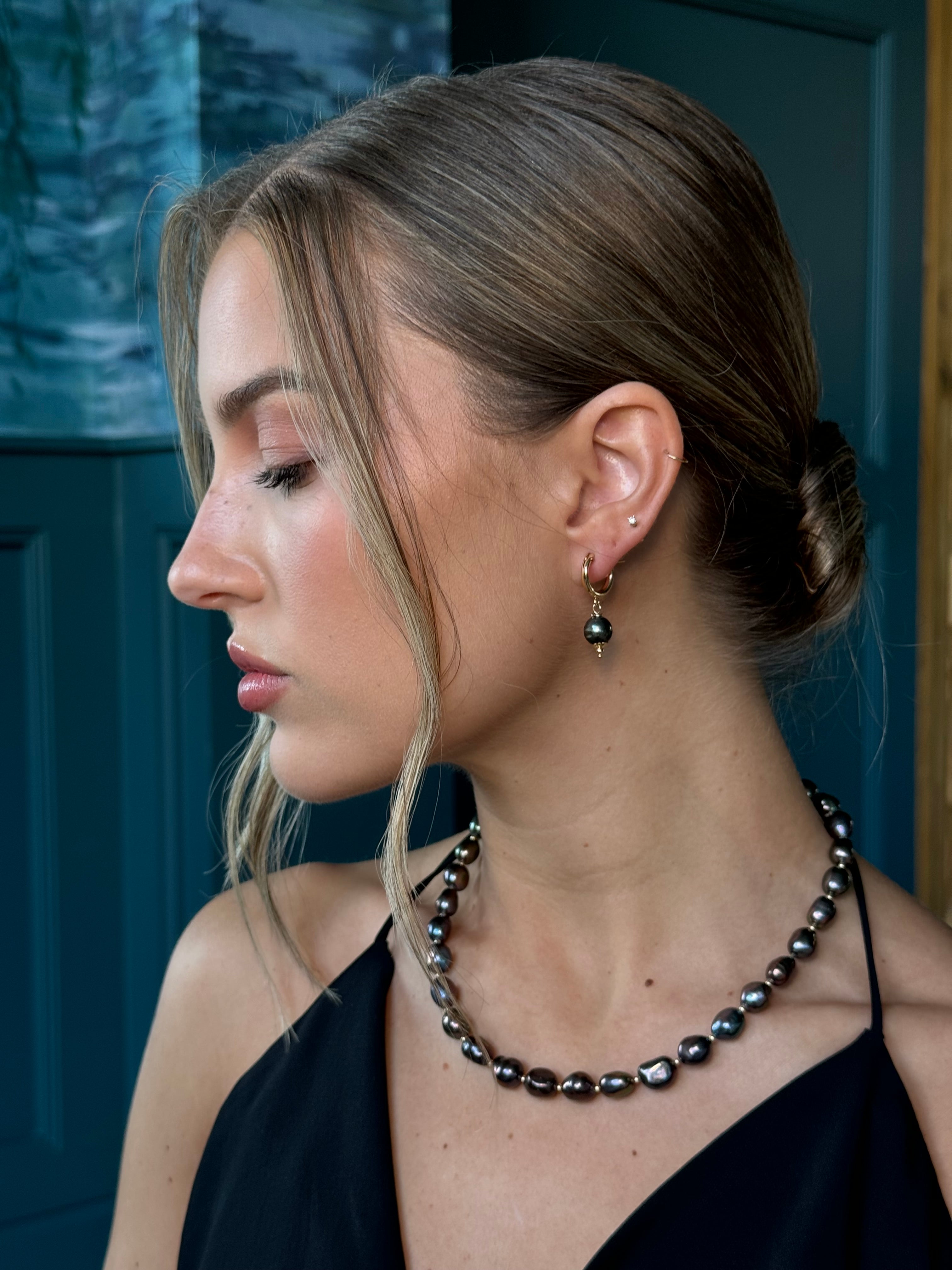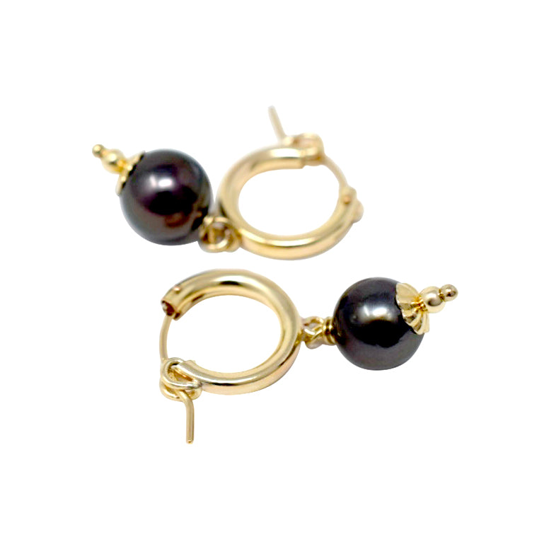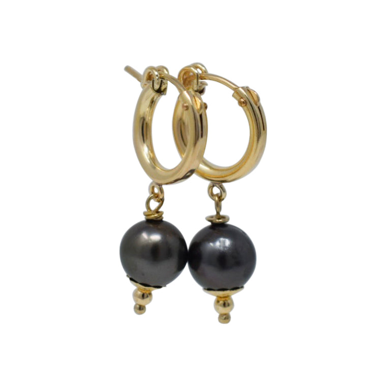 Tahitian Huggie Hoop Earrings with 8mm Black Pearls | Luxury Handmade Jewelry for the Woman Who Leads with Grace