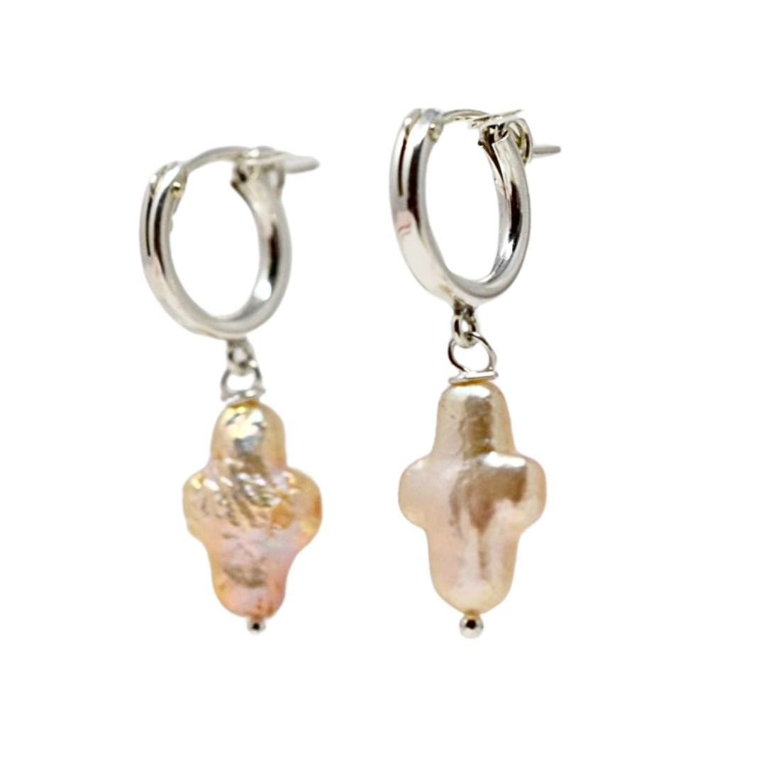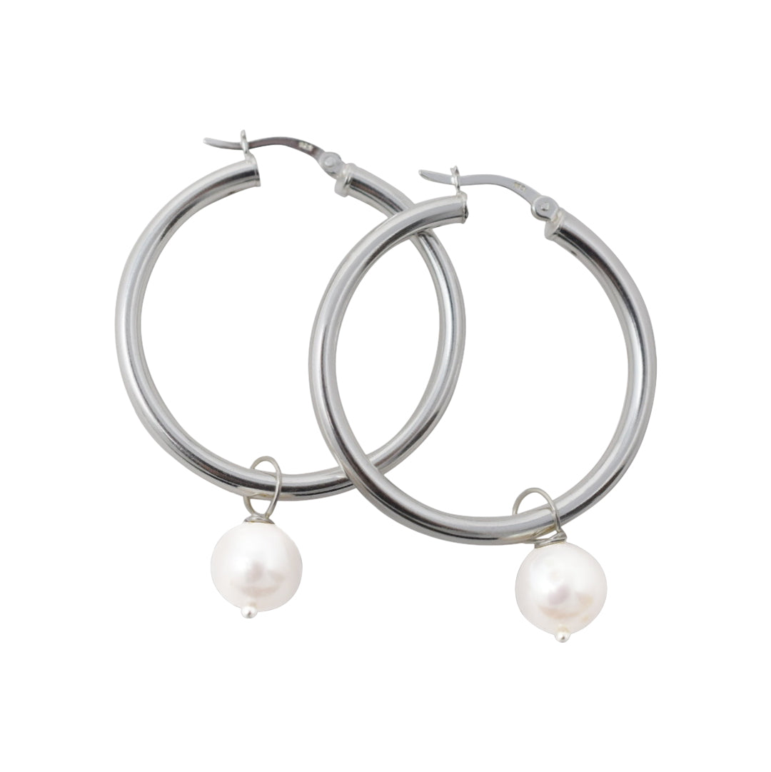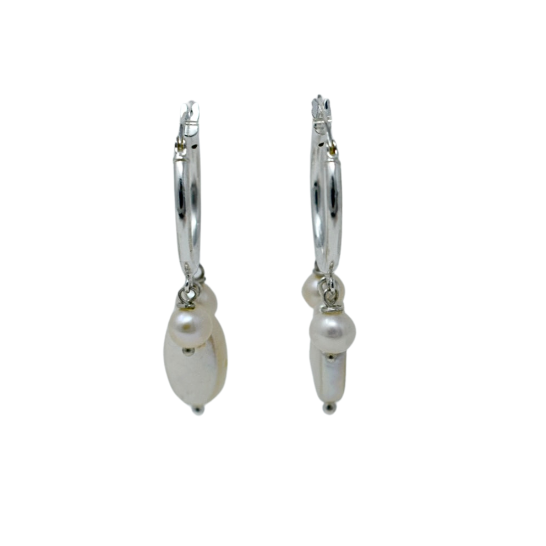 The Ruth Hoops | Medium Sterling Silver Baroque Pearl Earrings | Faith-Inspired Jewelry