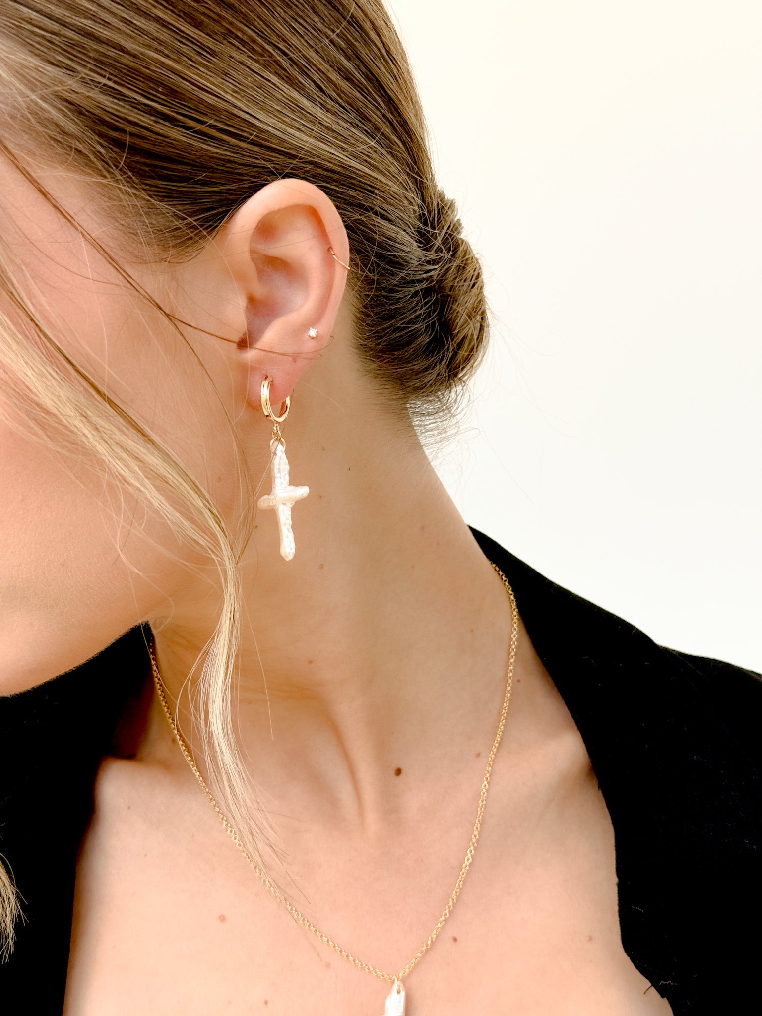 My Daughter – Cross Pearl Huggie Hoop Earrings | Limited Edition Christian Jewelry | Luke 8:48