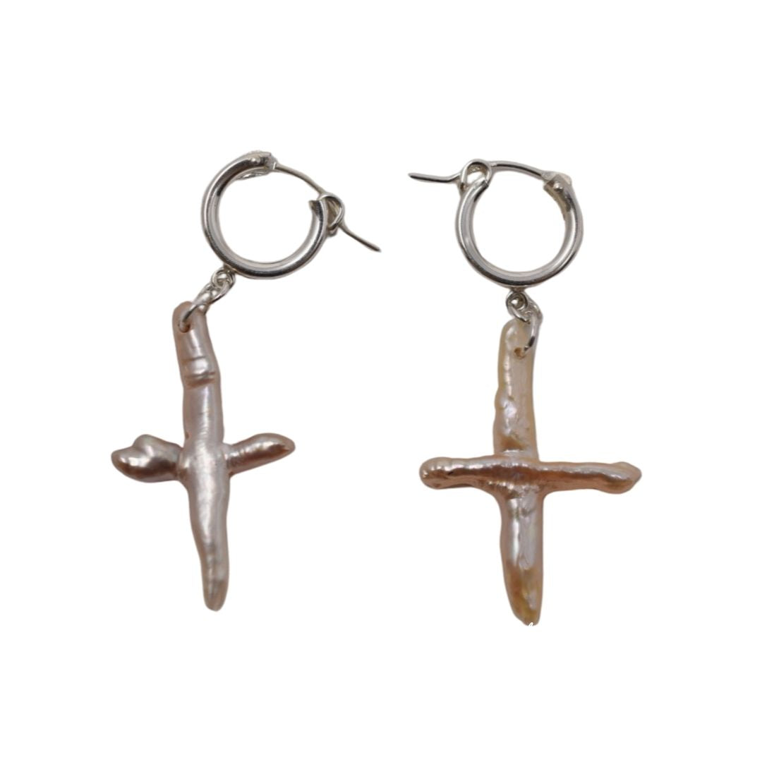 No Greater Love – Large Cross Pearl Earrings | Faith-Inspired Statement Hoops | Christian Jewelry for Women