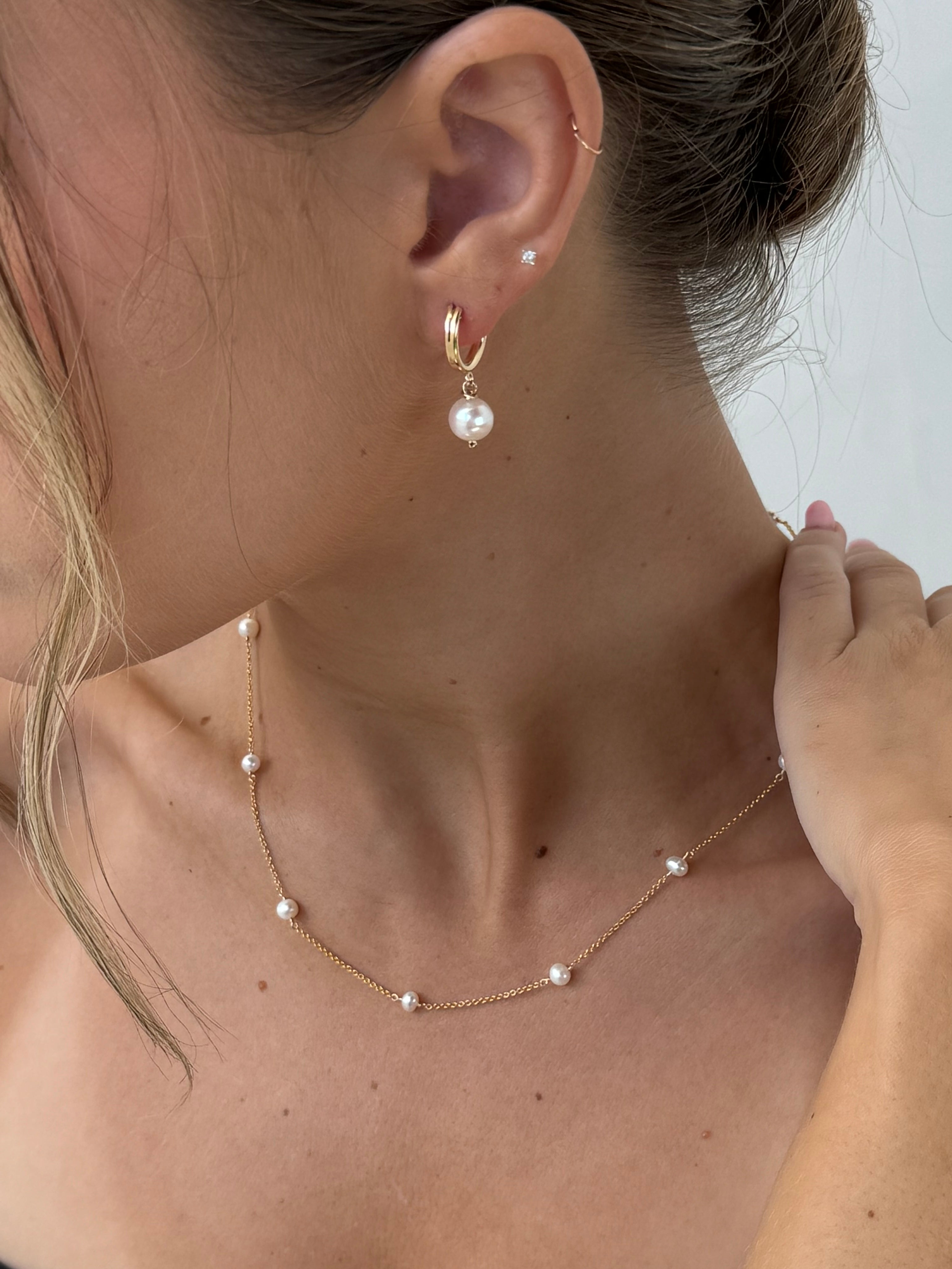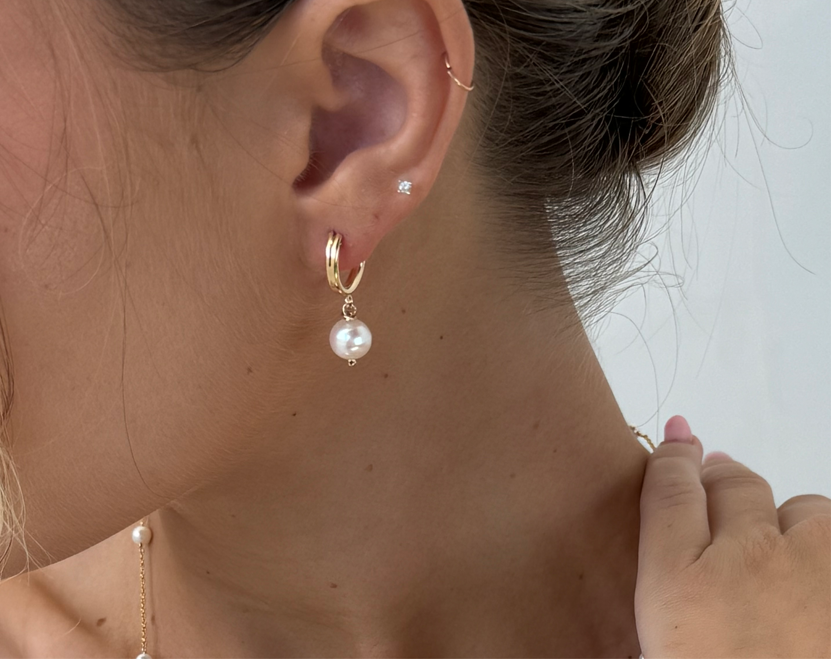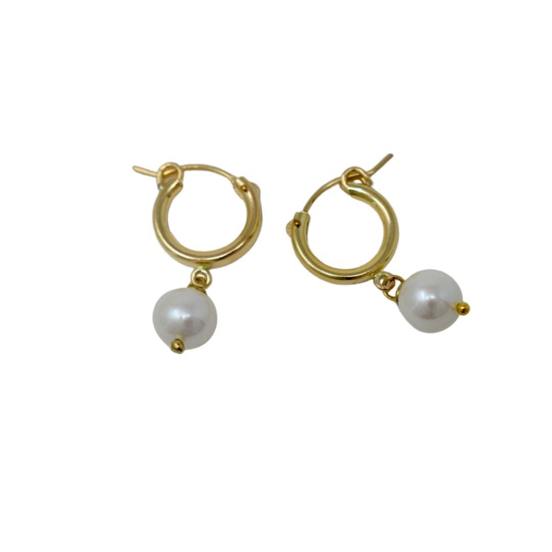 Tiny Gold-Filled Huggie Hoop Earrings with Pearl Dangles | Handmade Jewelry That Honors Your Story