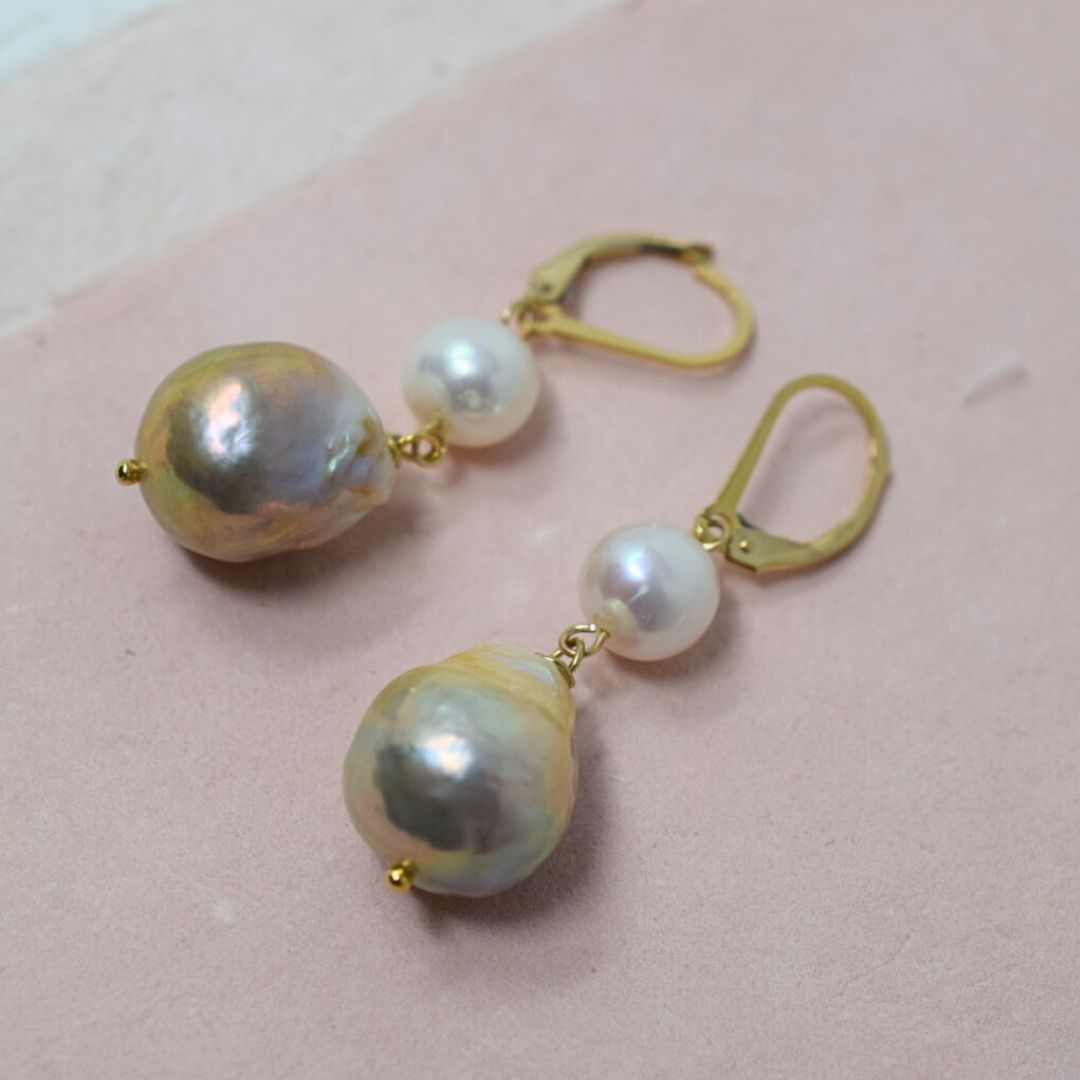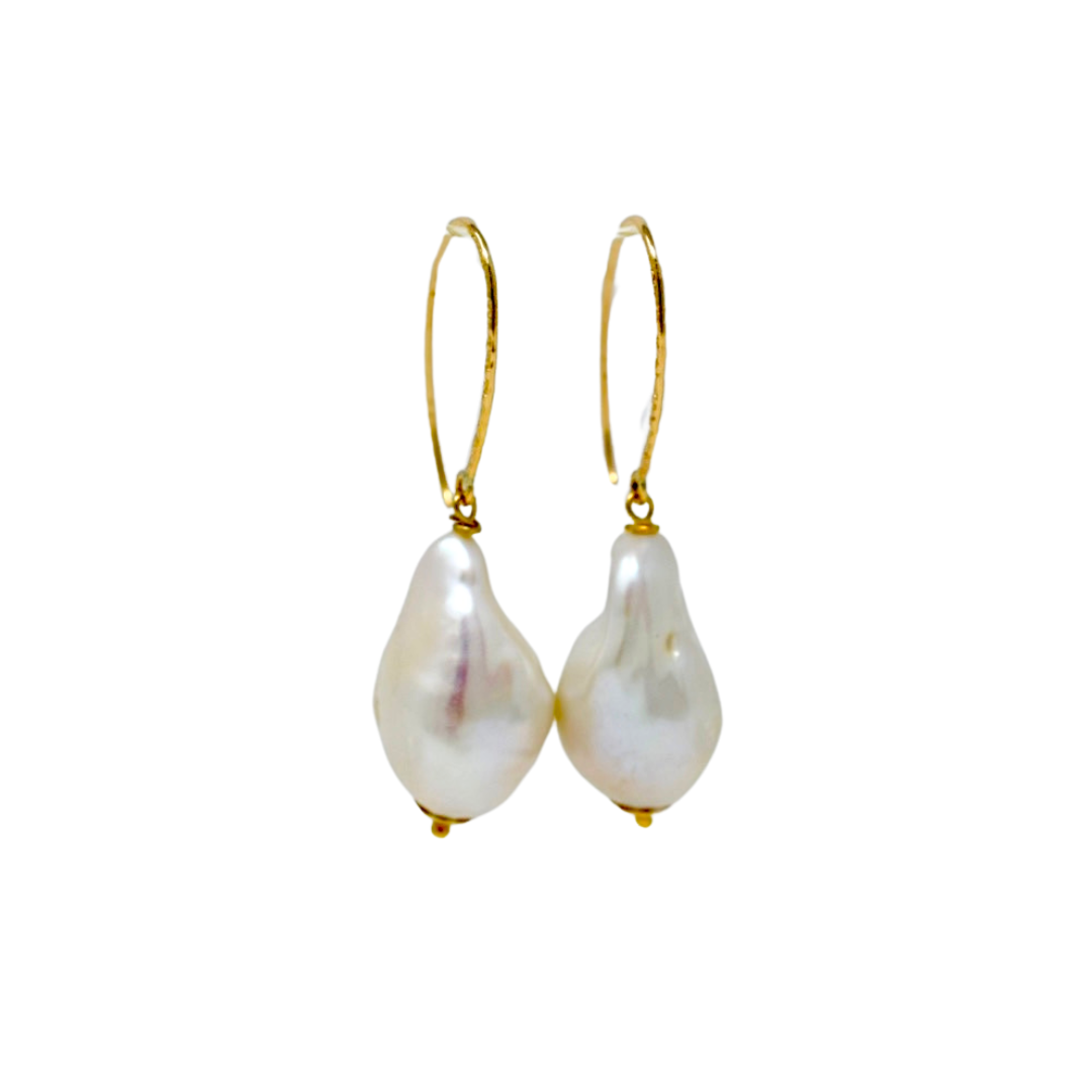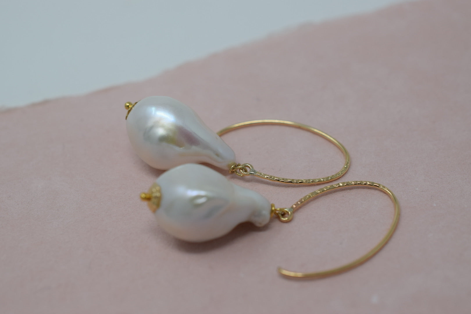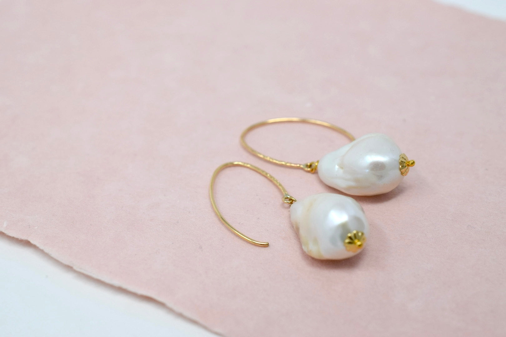 Boldly Go – Big Baroque Pearl Earrings | Statement Flameball Pearls on Gold Wires