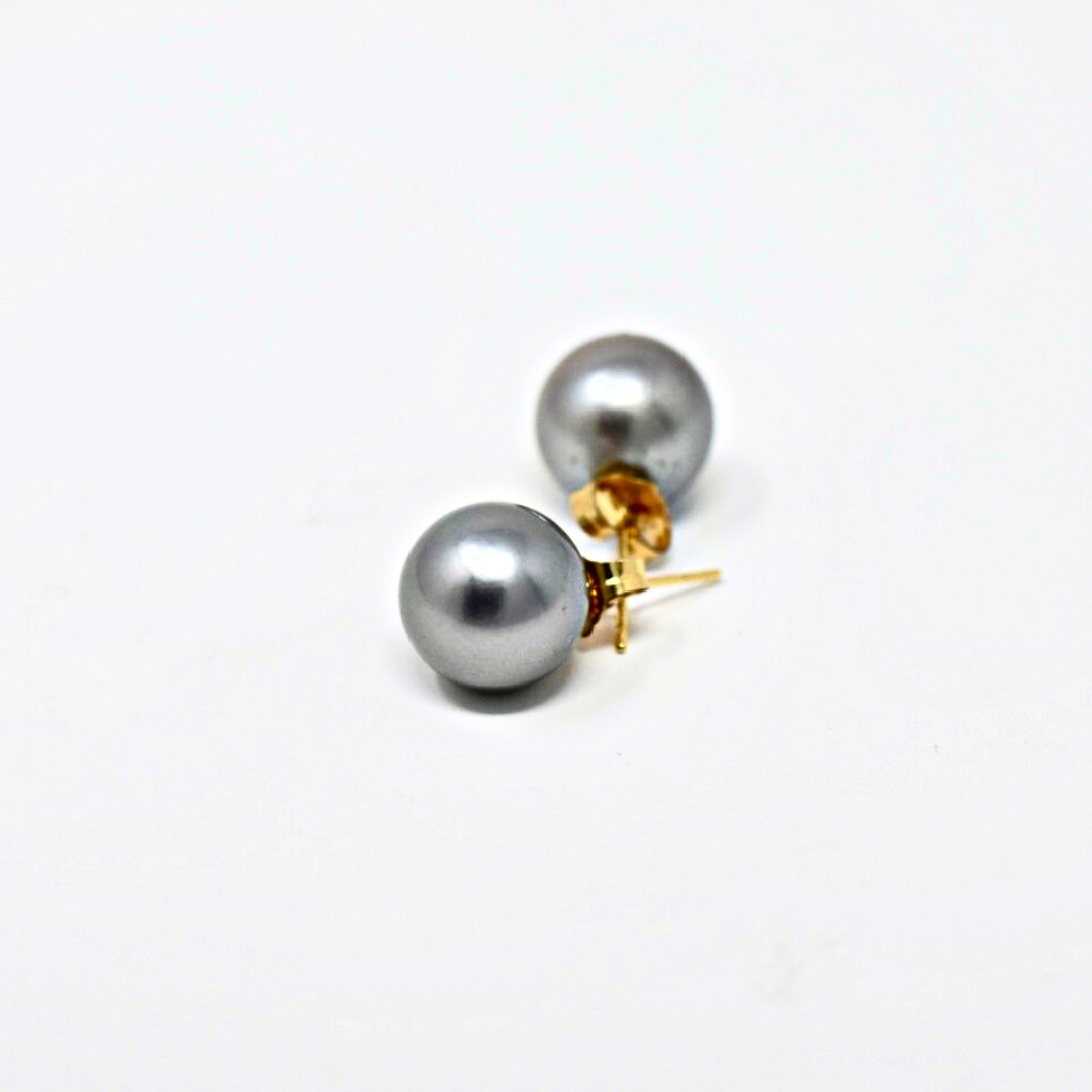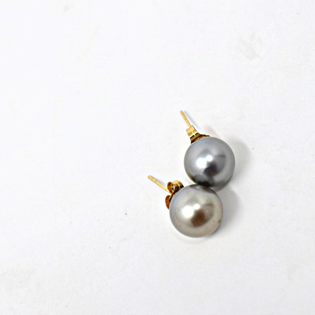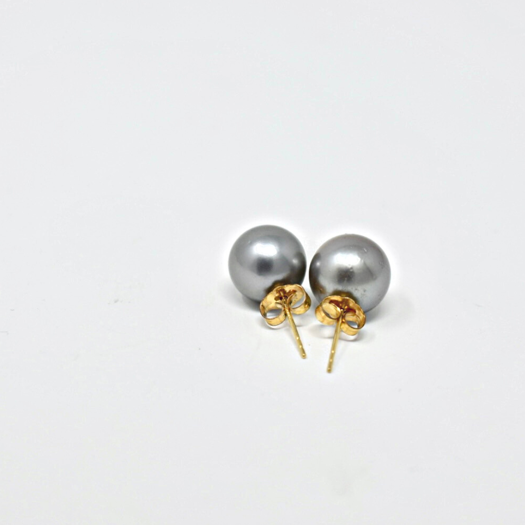 Tahitian Pearl Statement Stud Earrings – Large Silvery 11mm Round Pearls on 14k Gold-Filled Posts | Luxury Handmade Pearl Earrings