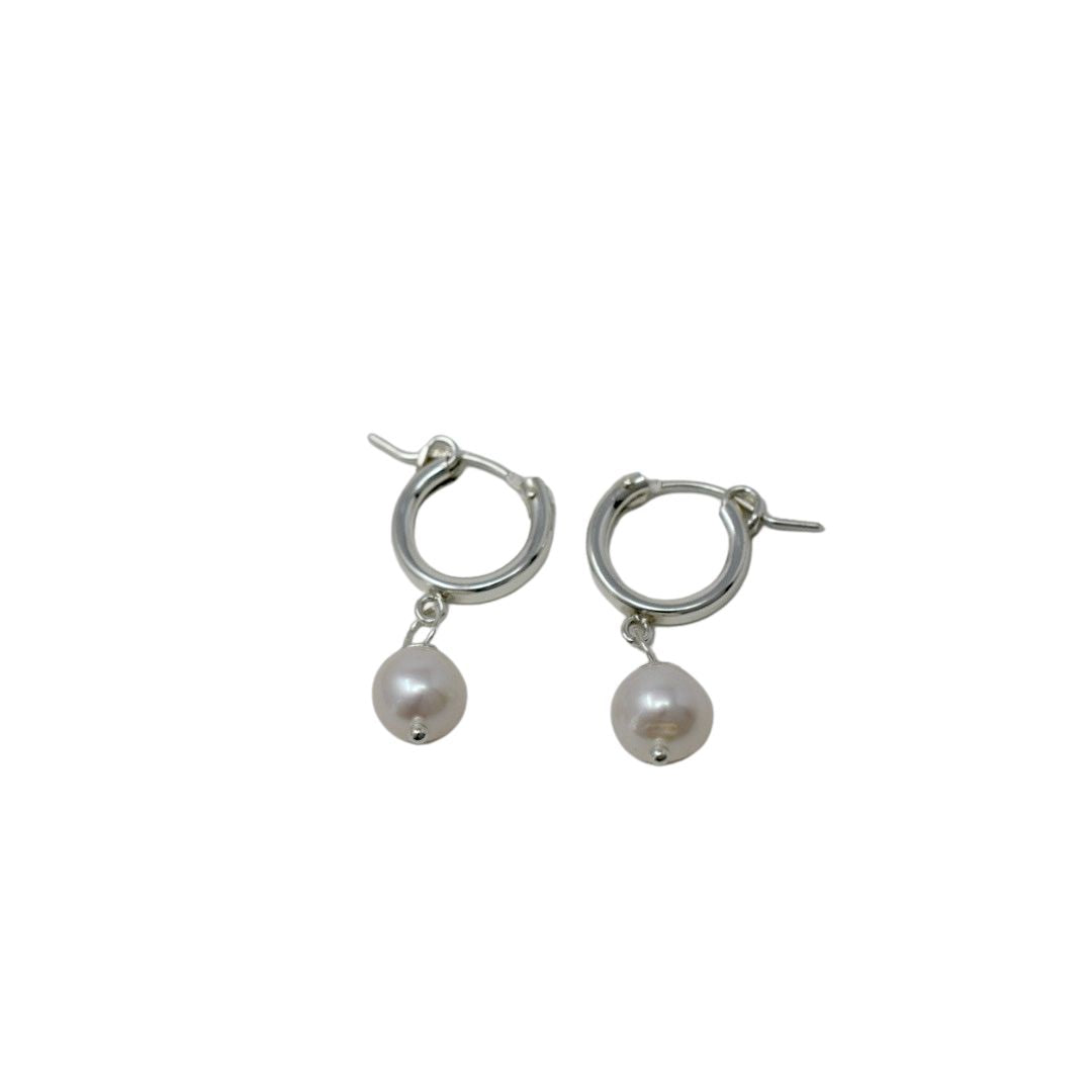 Tiny Sterling Silver Huggie Hoop Earrings with Pearl Dangles | Handmade Jewelry That Honors Your Story