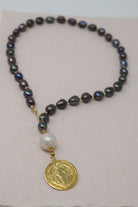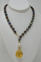 By Grace Necklace | Baroque Pearl Lariat with Gold Coin Pendant | Handmade Statement Jewelry for the Woman Who Wears Her Faith with Bold Elegance